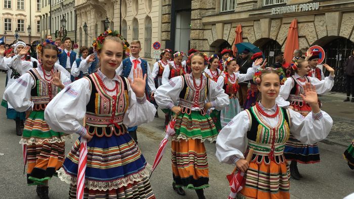 Am Sontag, 17. September 2017 konnten die Teilnehmer des Festivals an der Folkloreparade, die das Oktoberfest in München einläutet, teilnehmen. Dank des persönlichen Engagements von Dr. Elżbieta Zawadzka wurde dieses Ereignis durch den Fernsehsender ZDF gezeigt, zudem konnten die polnischen Künstler an der weltweit größten Folkloreparade teilnehmen. Die Vielfalt der Farben, Kostüme, Instrumente und Blumen, große Menge von lächelnden und fröhlichen Zuschauern entlang der Parade – all das trug dazu bei, dass es ein einmaliges Erlebnis war. Eine heitere und bunte polnische Gruppe in Trachten aus Kraków, Rzeszów und Krzczon präsentierte sich tanzend auf den Straßen von München. Die Schönheit polnischer Mädchen hat zum wiederholten Mal die Herzen des deutschen Publikums erobert. Beim Anblick der Bilder von der Parade (die Mehrheit machte deutscher Reporter polnischer Herkunft Henryk Bilski) wundert man sich nicht darüber.