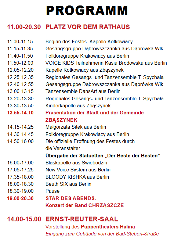 Das detaillierte Programm des Polonia-Festes finden Sie auf der Website:
