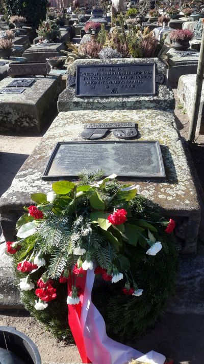 Der erste Spaziergang über den Friedhof machte einen erstaunlichen Eindruck auf ihn. Er führte an Hunderten von Steinsandsteinblöcken vorbei, die Grabsteine mit schönen Wappen und Familienzeichen waren.