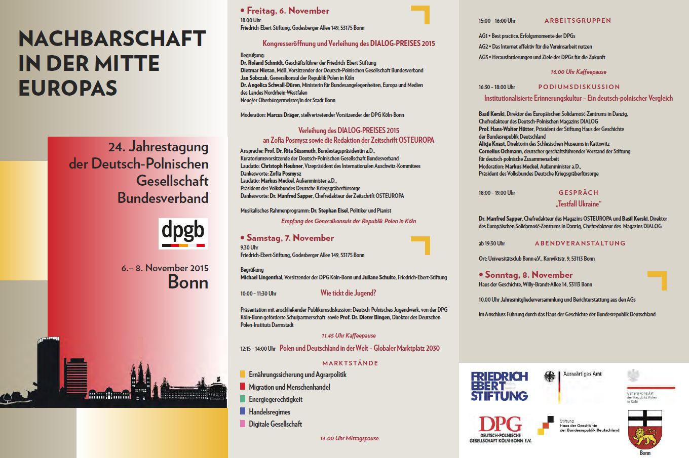 Herzliche Einladung zum Jahreskongress "Nachbarschaft in der Mitte Europas" der Deutsch-Polnischen Gesellschaften vom 6.-8. November 2015 in die Bundesstadt Bonn