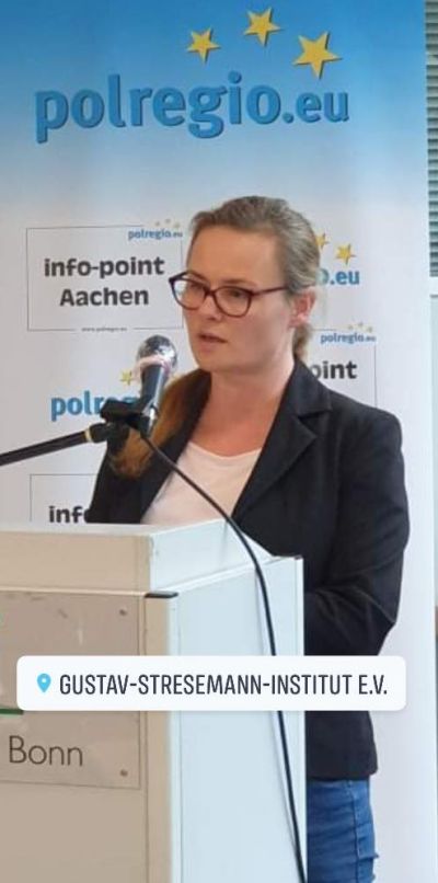 Am Beispiel der Initiative "Info-Point-Polregio in NRW" stellte Joanna Szymańska das Thema Bürgerbeteiligung in öffentlichen Gremien und die Einbindung der polnischen Gemeinschaft in das politische Leben in Deutschland vor. Barbara Lange von der Frankfurter Initiative "Give a Sign" skizzierte das Programm des Wahlkampfes zur hessischen Landtagswahl 2021.