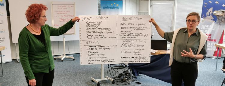 Während des Workshops wurden die Teilnehmerinnen mit einer Frage zu Social Media konfrontiert. Sie lernten die Kommunikationsformen und -strategien von Dr. Adrianna Tomaczak in ihrem Blog "Emigration for Success" kennen, in dem sie die Profile polnischer Frauen im Exil präsentiert und versucht, eine Definition zu erstellen, wer die Empfängerinnen der Blogs sind.