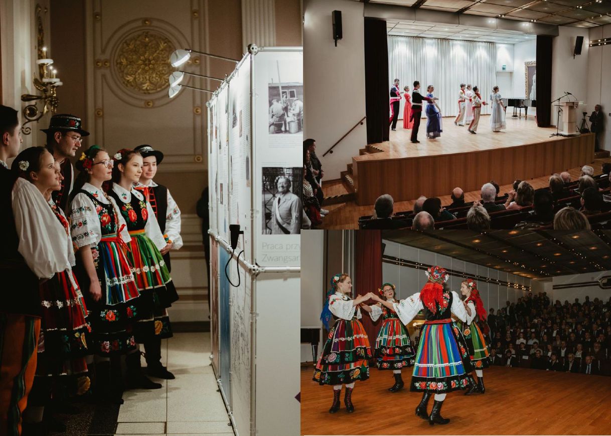 Die feierliche Ausstellungseröffnung fand am Donnerstag, dem 14. März 2019, um 18:00 Uhr statt. Anwesend waren auch mehrere Ehrengäste: Der Generalkonsul der Republik Polen Jakub Wawrzyniak, die DPI-Präsidentin Prof. Dr. Rita Süssmuth, der Oberbürgermeister der Stadt Darmstadt Jochen Partsch sowie ein zahlreiches Publikum. Ein gemeinsames Tanzprogramm, das in Plock und Darmstadt einstudiert wurde, wurde von den seit Jahren zusammenarbeitenden Folkloreensembles aus den Partnerstädten präsentiert, vom Pfadfinder-Tanz- und Gesangensemble DZIECI PLOCKA sowie von der Polnischen Folkloregruppe POLONEZ aus Darmstadt. Das Tanzprogramm umfasste polnische Nationaltänze: Polonaise und Mazurka in einer Choreographie von Zenona Choderny-Loew aus dem Ensemble POLONEZ sowie Kujawiak mit Oberek in einer Choreographie von Piotr Amrozy aus dem Ensemble DZIECI PLOCKA. Alle Tänze wurden von den beiden Ensembles gemeinsam getanzt, somit verbanden die polnischen Nationaltänze die beiden Ensembles symbolisch in zweierlei Hinsicht: einerseits auf der städtepartnerschaftlichen Ebene - ein Ensemble aus Polen und der polnischen Partnerstadt Darmstadts und ein polnisches Ensemble aus Darmstadt, und auf der anderen Seite zwei Generationen von Polen.