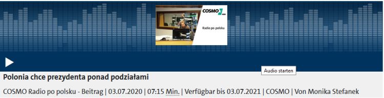 Dialogbereitschaft, Neutralität und Gleichbehandlung polnischer Organisationen, unabhängig vom Umfeld, das sie vertreten. Das sind die häufigsten Erwartungen der Vertreter der deutsch-polnischen Gemeinschaft an den künftigen Präsidenten der Republik Polen", resümiert Radio-Cosmo-Journalistin Monika Stefanek nach Gesprächen mit Vertretern der deutsch-polnischen Gemeinschaft.