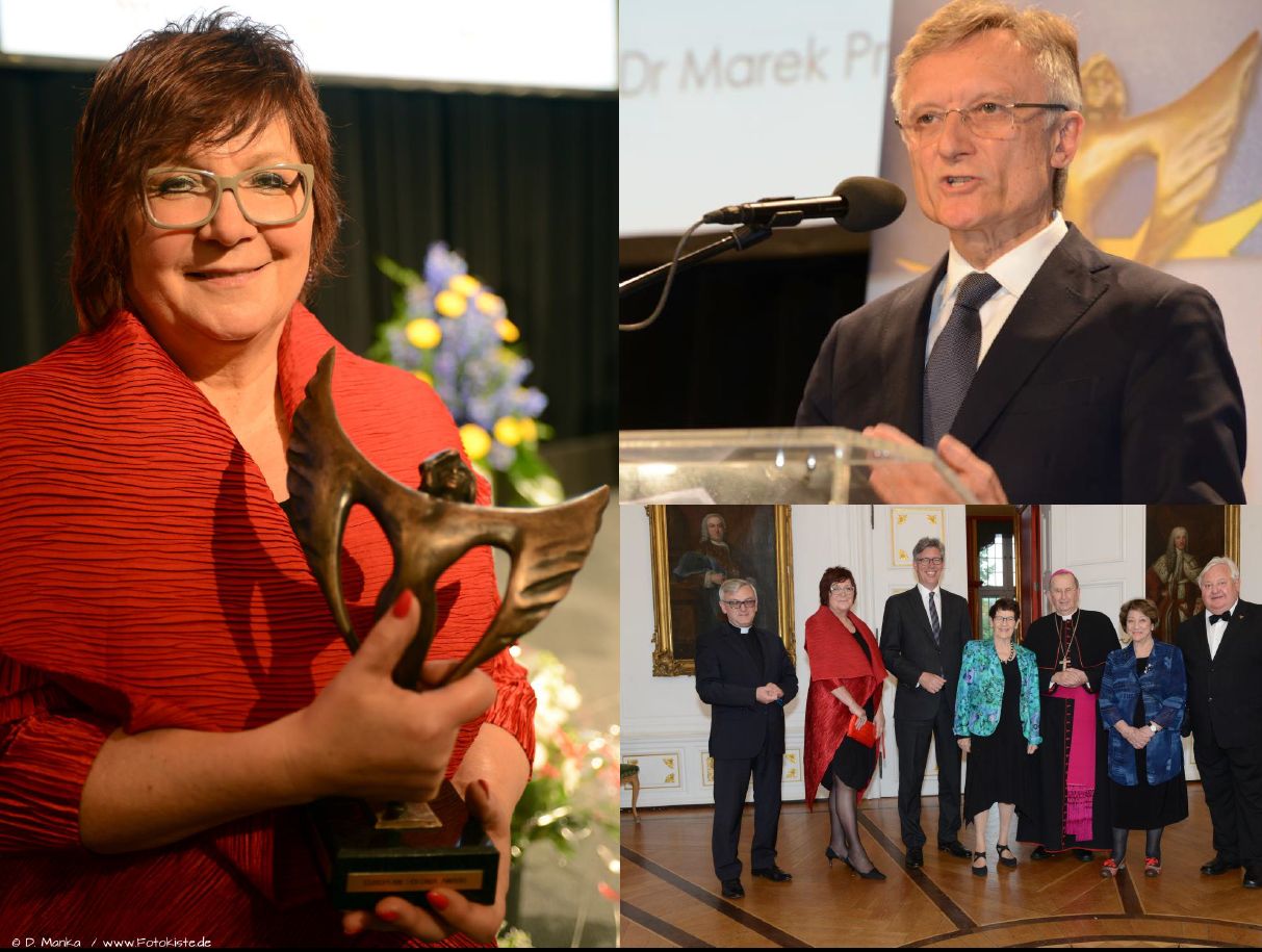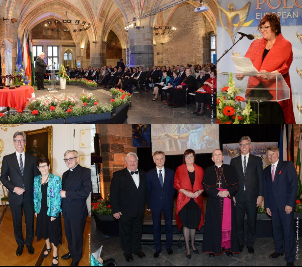 Erzbischof Prof. Dr. Henryk Muszynski erhielt den Ehrenpreis, für den Aufbau des europäischen Dialogs und der deutsch-polnischen Verständigung. Der Preis wurde für sein gesamtes Lebenswerk verliehen. Sein ganzes Leben hat er dem Gott und der Gesellschaft gewidmet: „Auf dich, o Herr, habe ich meine Hoffnung gesetzt. In Ewigkeit werde ich nicht zuschanden“ – Erzbischof Muszynski. In der Laudatio, die Frau Senatorin Barbara Borys-Damiecka hielt, konnten nicht alle seine Verdienste und Auszeichnungen genannt werden! Erzbischof Muszynski vertritt Kirche die dem Menschen entgegen beisteht. Eine Kirche die sich aus der Geste der Barmherzigkeit freut. Eine Kirche die Brücken, nicht die Mauer baut.