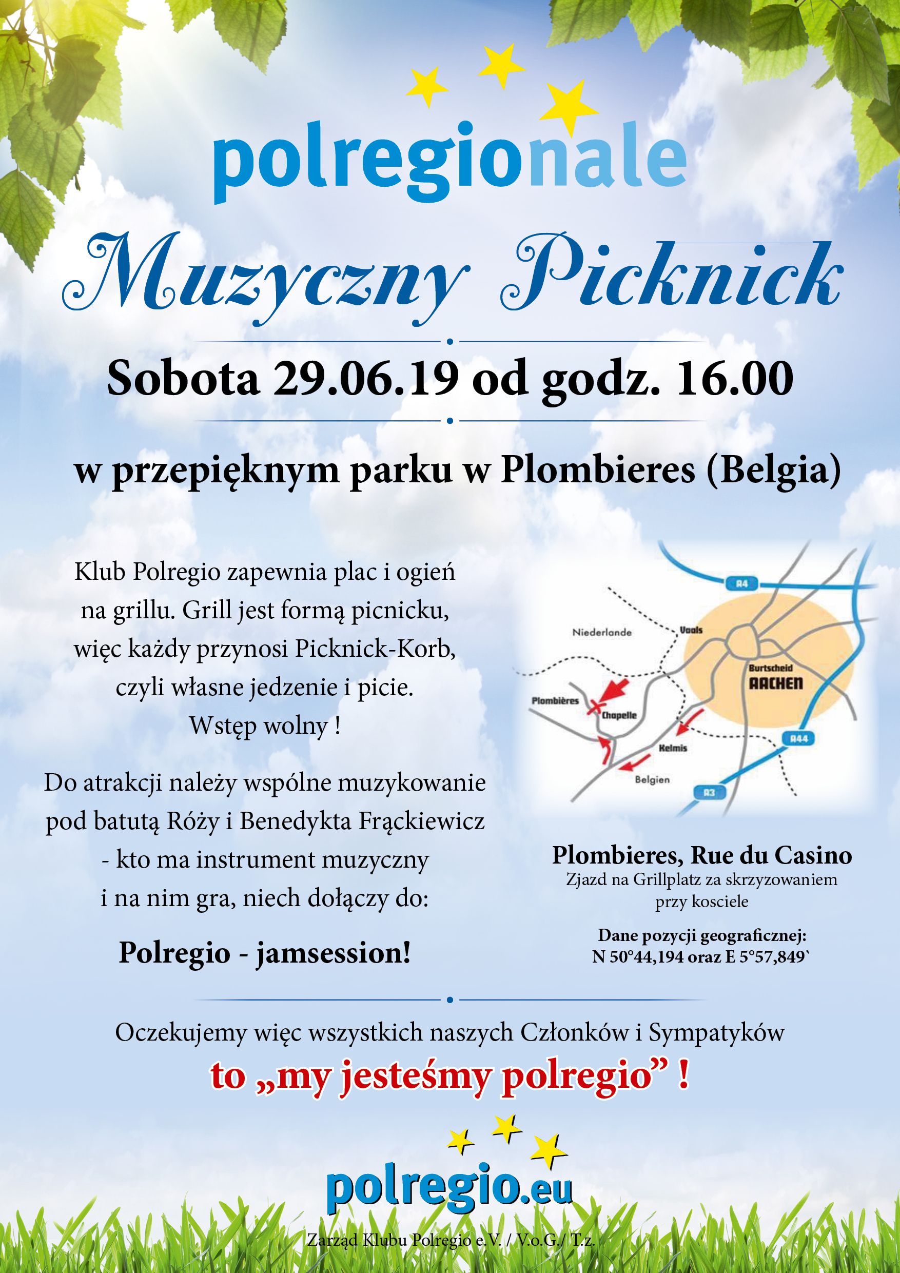 Achener Kulturverein Polregio e.V. organisiert jährlich seit 2003 das "Musicalisches Picknick Polregio" im Park in Plombieres am Dreiländereck. Auch dieses Jahr, am Samstag, den 29. Juni, trift sich Polonia mit neuen Freunden auf der malerischen Waldanlage. Die Attraktionen beinhalteten einen gemeinsamen Grill und musikalischen Akzent in der Leistung von Duo Róża und Benedykt Frąckiewicz. Der Polregio Club bietet traditionell einen gemieteten Platz, Holzkohlegrill und eine tolle Atmosphäre. Jeder bringt in einen Picknickskorb, was er mag und was andere gerne anbieten möchten! Polregio-Freunde hatten die Gelegenheit, mit einem kalten Bier über Urlaubspläne zu sprechen. Für Kinder gibt es einen Spielplatz und einen ganzen Park voller Attraktionen. Auch dieses Mal erwarten wir etwa 100 Freunde, darunter viele Kinder.