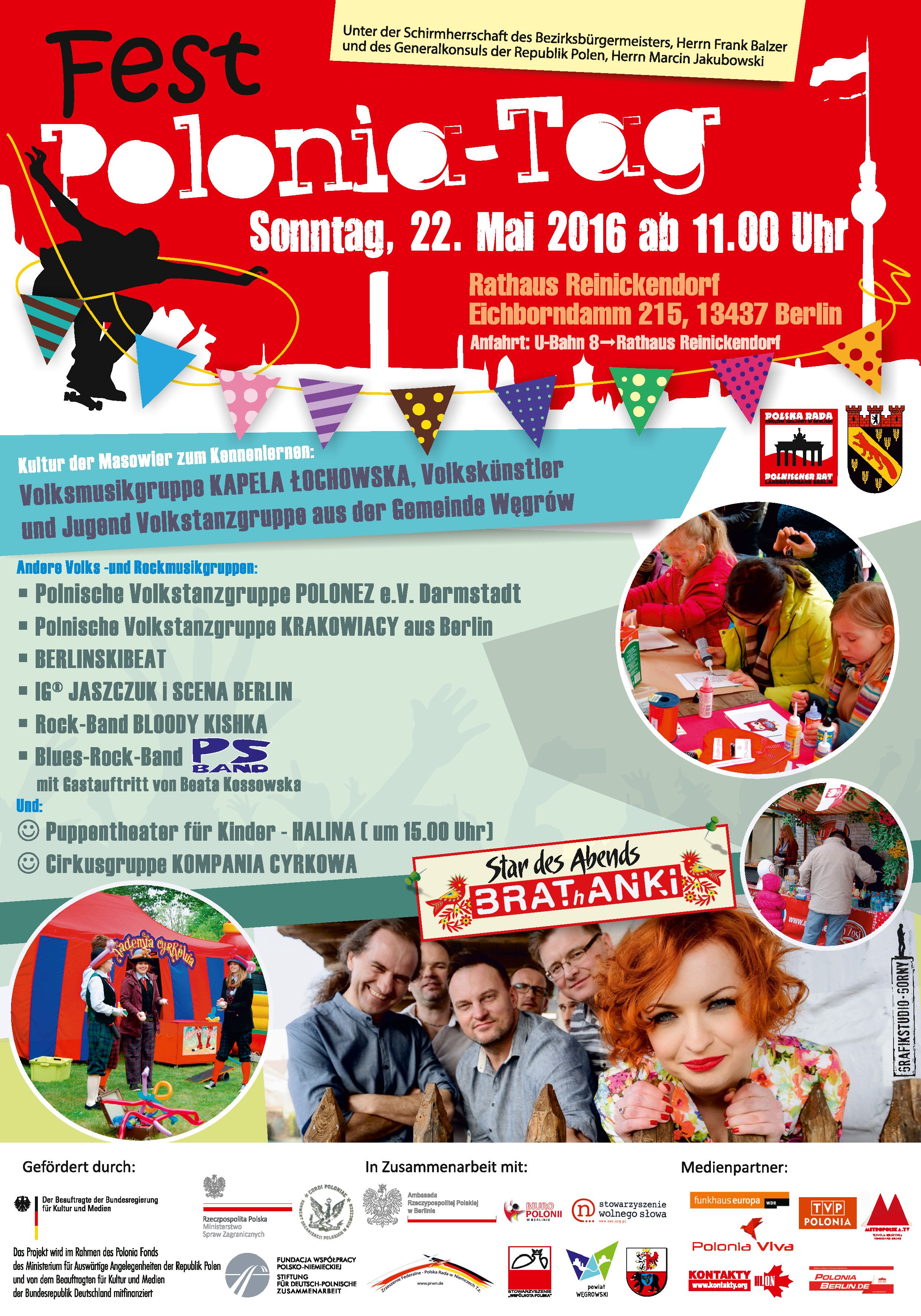 Am 21. Mai 2017 fand vor dem Rathaus von Berlin-Reinickendorf ein Fest aus dem Anlass des Tages der Polonia und der Polen im Ausland statt. Es gehört bereits zu Tradition, dass dieser Tag in größeren Ansammlungen von Polonia weltweit feierlich gefeiert wird. An verschiedenen Orten bereiten die Mitglieder von Polonia-Organisationen Veranstaltungen aus diesem Anlass vor. Am Tag der Polonia bildet die weltweit verstreute Polonia eine große Gemeinschaft mit polnischen Wurzeln. Auch in dem multikulturellen Berlin möchten die Polen durch verschiedene Aktivitäten sichtbar werden.