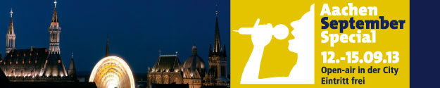 Vom 12. bis 15. September 2013 lädt das AachenSeptemberSpecial mit einem vielfältigen Mix aus internationaler, nationaler und lokaler Künstler zum siebten Mal in das einzigartige Flair der Aachener Altstadt ein.