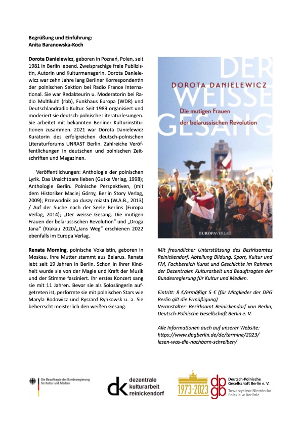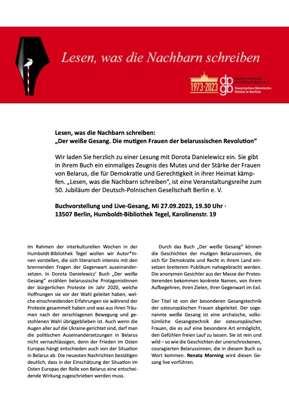 Biały śpiew - wieczór autorski Doroty Danielewicz 27.09. Humboldt-Bibliothek Tegel