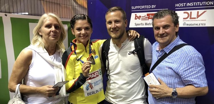 Fot. Anika Bornemann - Pamela razem za rodzicami i mężem Maikiem, po zdobyciu srebrnego medalu na 100 m. przez płotki, podczas mistrzostw Europy w Berlinie.