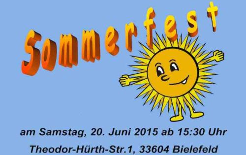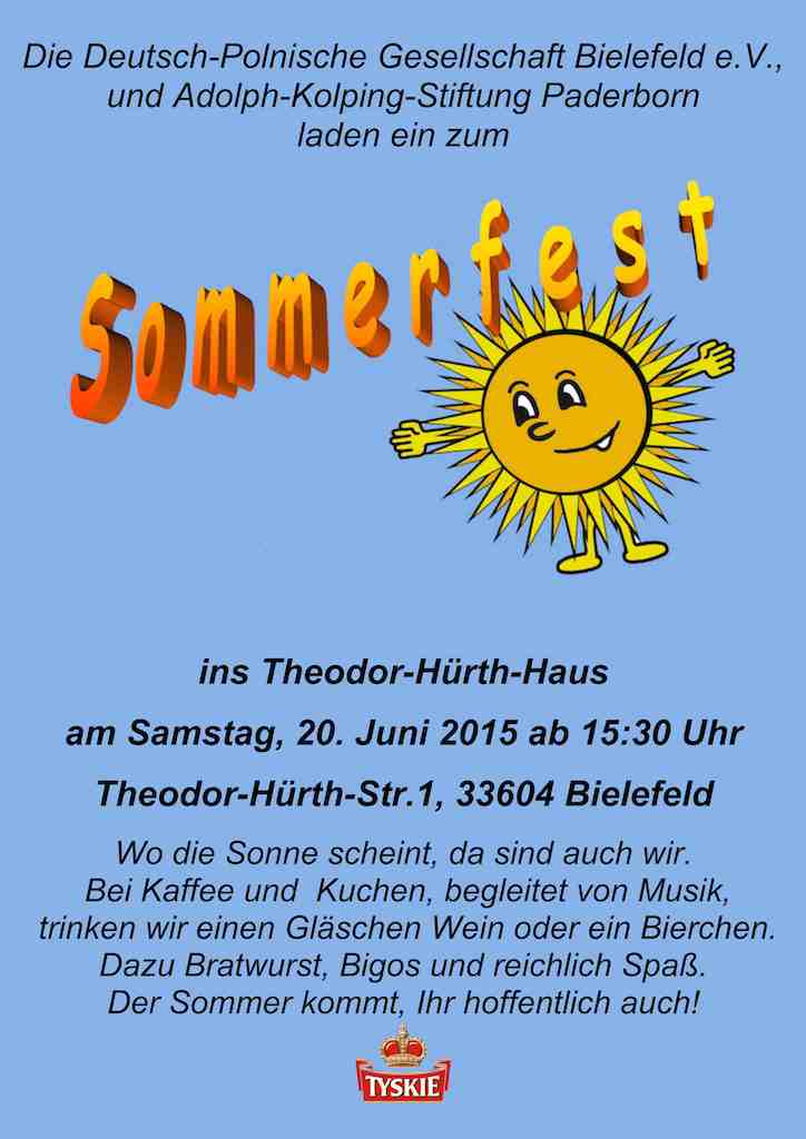 Drodz zainteresowani, przyjaciele, sponsorzy i partnerzy DPG Bielefeld e.V., chcielibyśmy razem z Adolph Kolping Fundacji Paderborn zaprosic na nasz rodzinny i letni festyn, ktory rozpoczyna się w sobotę, 20 czerwca 2015 o godzinie 15:30 w Theodor Hürth House.