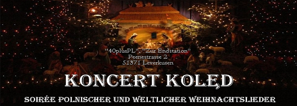 W tym roku, po raz pierwszy w historii, koncert polskich kolęd odbędzie się w nowo otwartym klubie polonijnym: "40plusPL", "Zur Endstation" Peenestrasse 2, 51371 Leverkusen