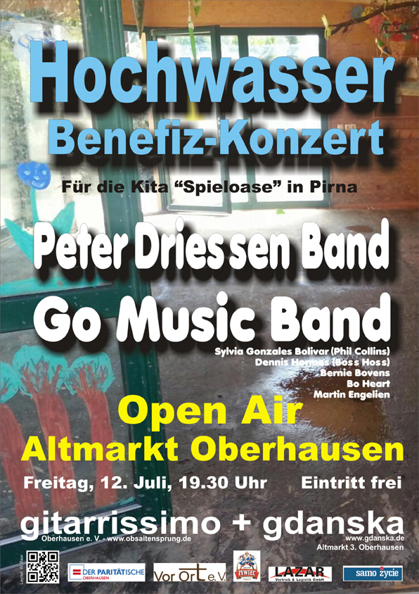 Am Freitag, den 12. Juli ab 19 Uhr spielen wir ein Benefizkonzert für die Kita "Spieloase" in Pirna. Dabei sind hervorragende Musiker: