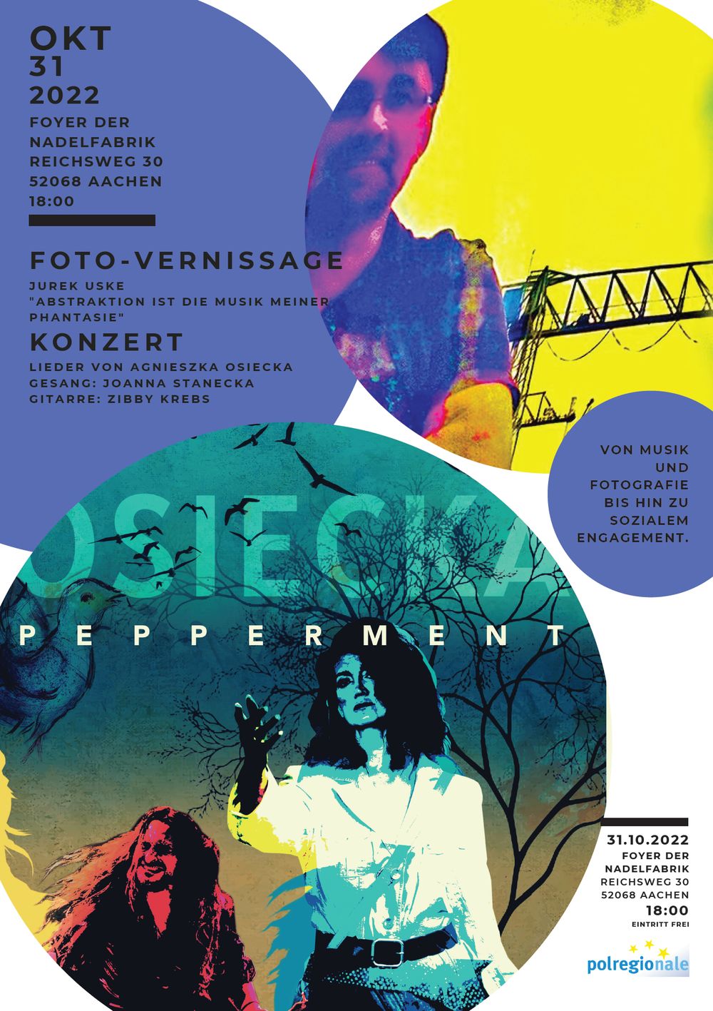 Serdecznie zapraszamy na wernisaż wystawy fotografii Jurka Uske "Abstrakcja to muzyka mojej wyobraźni" oraz Koncert Joanny Staneckiej "Pepperment", który jest kameralnym hołdem dedykowanym polskiej tekściarce i poetce Agnieszce Osieckiej.