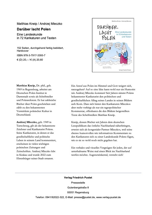 EUROPOLIS KÖLN e.V. zaprasza w niedzielę 10.12.23 w godzinach 16.00-22.00 z różnorodnym programem i dostatecznym czasem na polsko-niemieckie spotkanie i networking Polonii. Wydarzenie rozpocznie się otwarciem wystawy obrazów najsłynniejszego polskiego karykaturzysty - Andrzeja Mleczki. Dr Matthias Kneipp przeczyta fragmenty swojej książki, Z tego śmieją się Polacy która powstała we współpracy z Mleczko. W swoich obrazach celuje on nie tylko w codzienne życie polityczne i społeczne swojego kraju. Że w karykaturach słynnego artysty jest coś więcej niż tylko codzienny komentarz polityczny, pokazuje w swoich tekstach Matthias Kneip, który jest jednym z najważniejszych promotorów polskiej kultury w Niemczech."Addio pomidory - NO DISCO BUT POLO" to polski crash course z chansons. Margaux Kier śpiewa w trio z wirtuozami jazzu Florianem Stadlerem na akordeonie i Philippem Humburgiem na gitarze - dowcipne i melancholijne polskie piosenki i pokazuje publiczności wyjście z gąszczu polskich spółgłosek i znaków specjalnych... www.margauxunddiebanditen.deTSAZIKEN - sześć kobiet z Kolonii od lat z pasją kolekcjonuje muzykę z całego świata, a gitarzysta Raimund Kroboth aranżuje utwory dla tej międzynarodowej grupy wokalnej. Od śmiałego fińskiego staccato, romansów "bez litości" po ogniste, nieskrępowane bałkańskie beaty, Tsaziken nie ograniczają się do jednego stylu czy kontynentu. Ich program "Kischkesch“ (w języku Rotwelsch - dźwięk) obejmuje tradycyjne pieśni od Bałkanów po Polskę i Madagaskar, pełne energii i radości życia! www.tsaziken.de