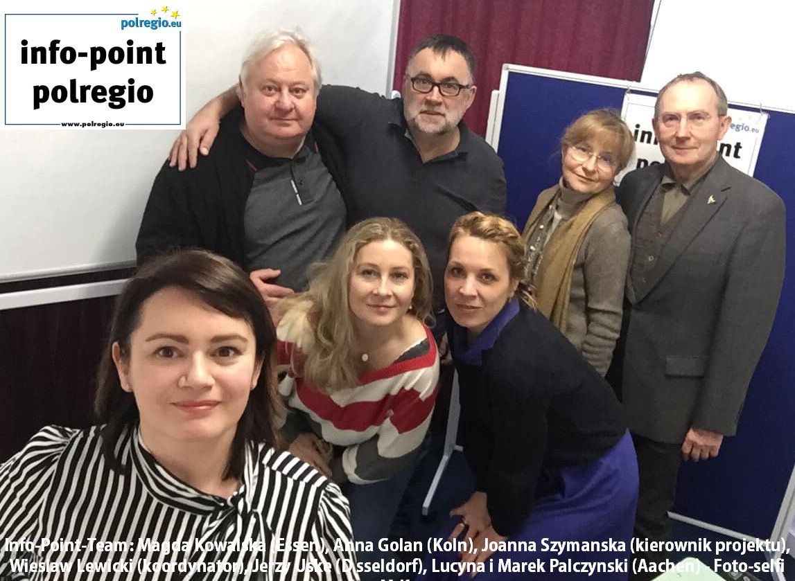 Info-Point-Team: Magda Kowalska (Essen), Lucyna i Marek Palczynski (Aachen), Lidia Uske (Düsseldorf), Anna Gölan (Köln), Wieslaw Lewicki (koordynator), Joanna Szymanska (kierownik projektu), Foto Jerzy Uske