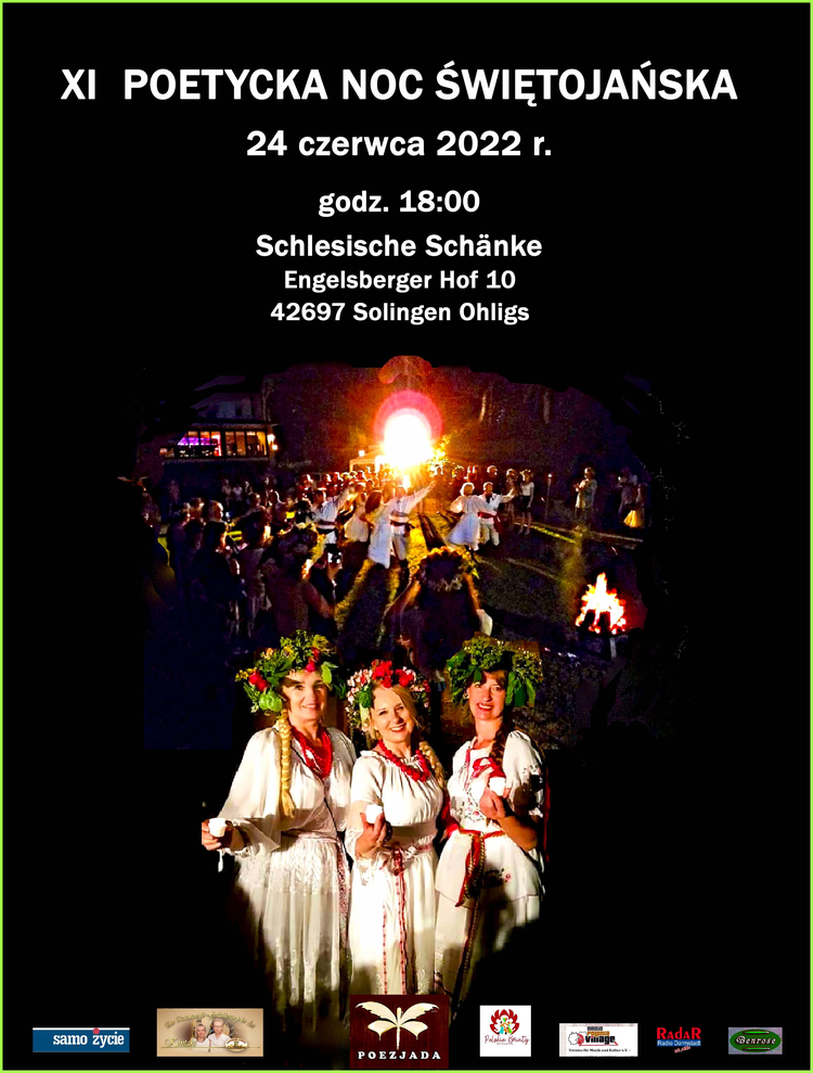 Po długiej, pandemicznej przerwie, wreszcie 24 czerwca 2022 r. możemy ponownie spotkać się, na naszej świętojańskiej łące, przy restauracji „Schlesische Schänke”, Engelsberger Hof 10, 42697 Solingen Ohligs.