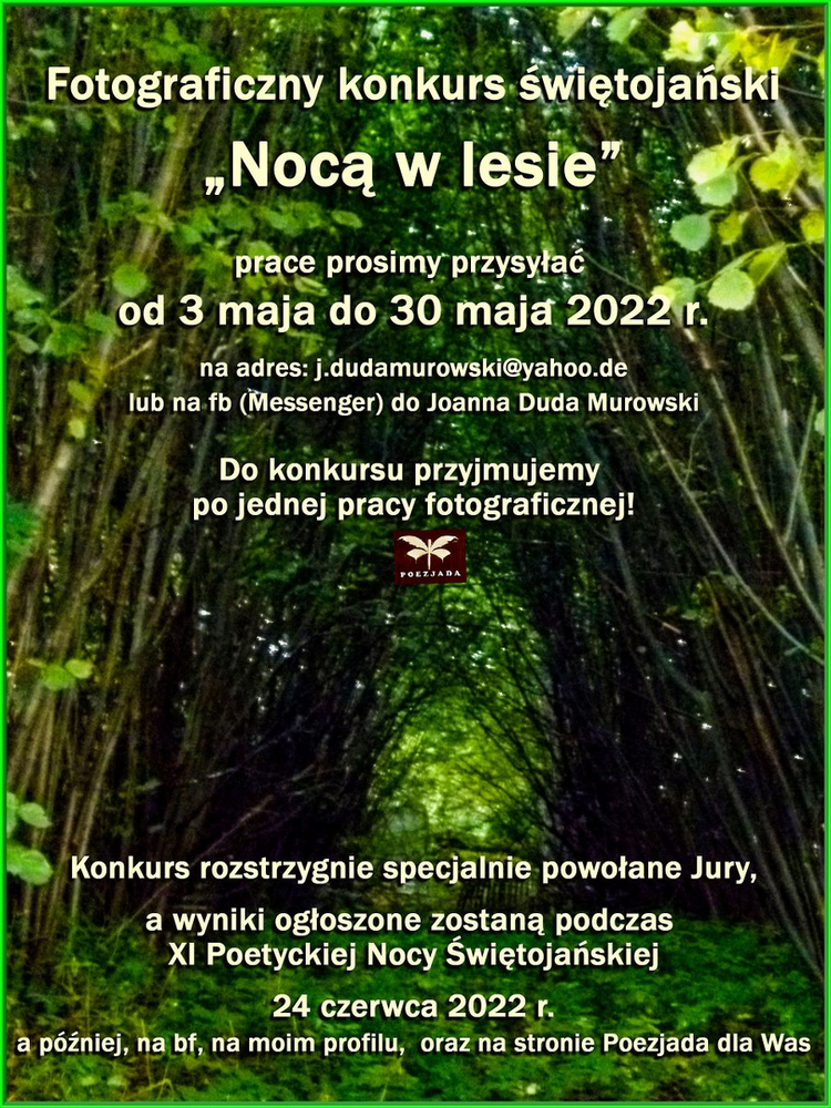 Spotkanie poprzedza tradycyjny świętojański konkurs fotograficzny pt. „Nocą w lesie”. Specjalnie powołane (międzynarodowe!) Jury, już czeka, na Wasze prace.